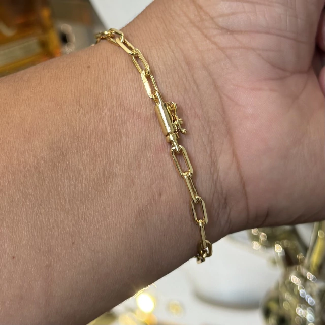 PULSEIRA CADEADO ALONGADO FECHO CANHÃO (4MM) - BANHADO A OURO 18K