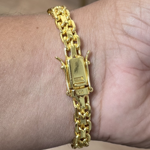 PULSEIRA TIJOLINHO ALONGADO (4mm) - BANHADA A OURO 18k