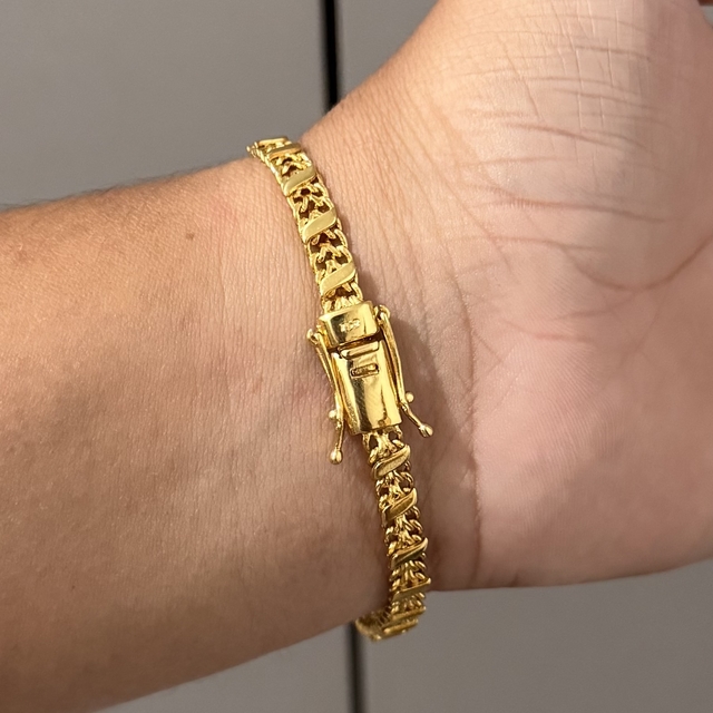 PULSEIRA CADEADO DUPLO (9mm) - BANHADA A OURO 18K